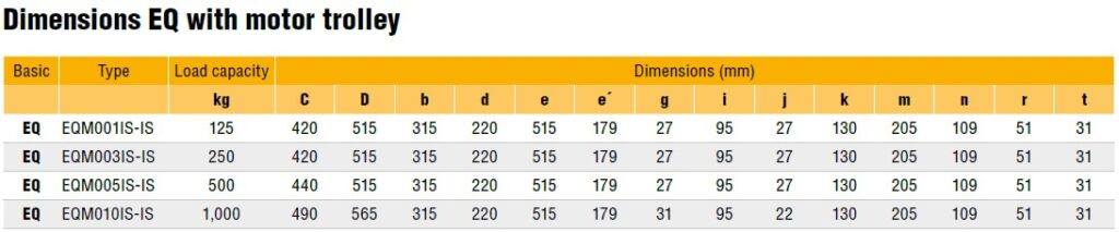 KITO EQM – ELEKTRIČNA LANČANA DIZALICA SA ELEKTRIČNIM KOLICIMA
