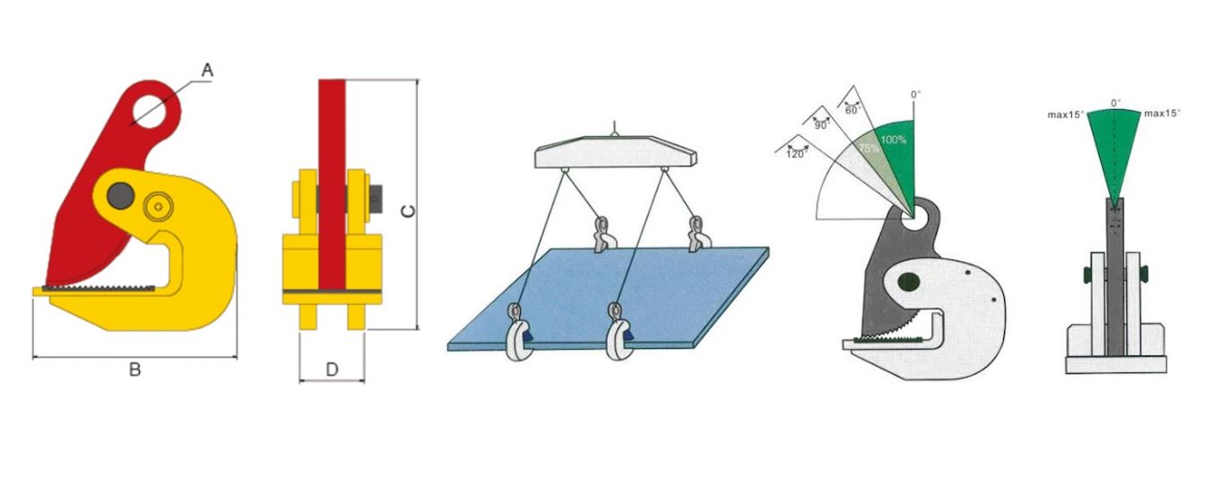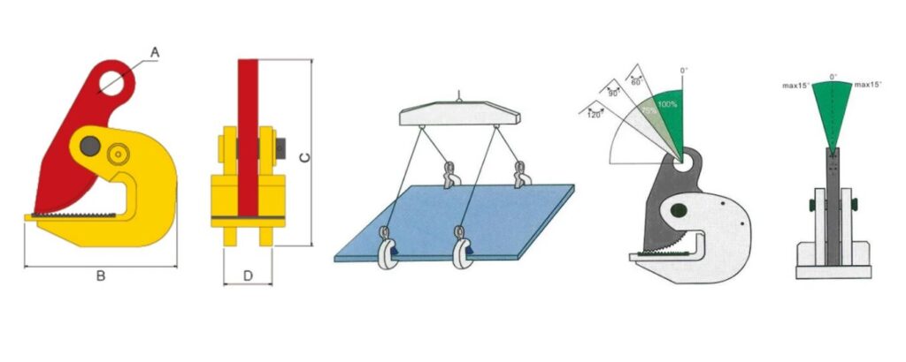 Horizontalni hvatači limova se uvek moraju koristiti u paru, sa dvokrakom priveznicom ili nosivom gredom-traverzom.